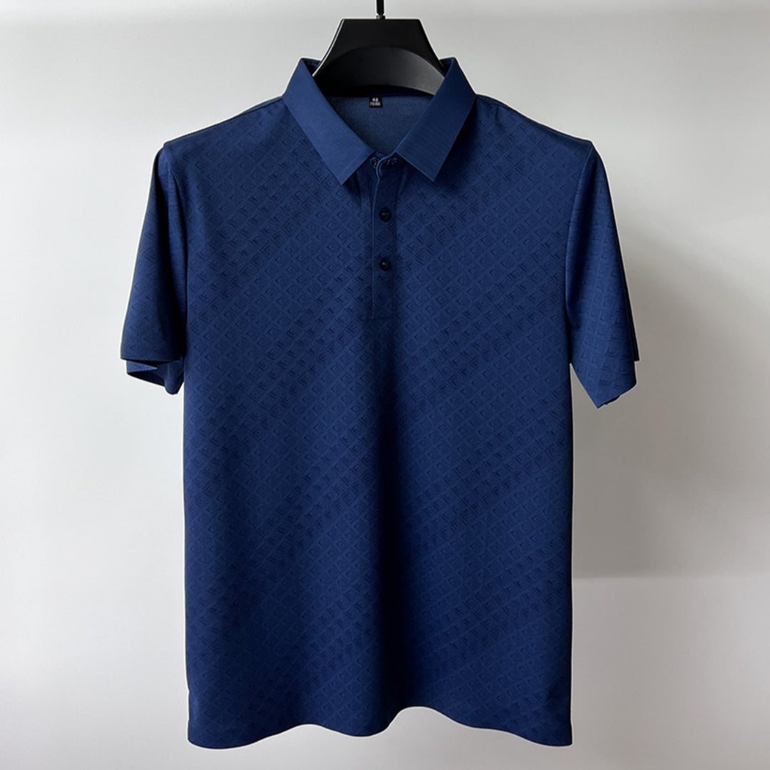 High-end Elegant Ice Silk Short Sleeve T-shirt Men's Lapel Summer Plaid Polo Shirt