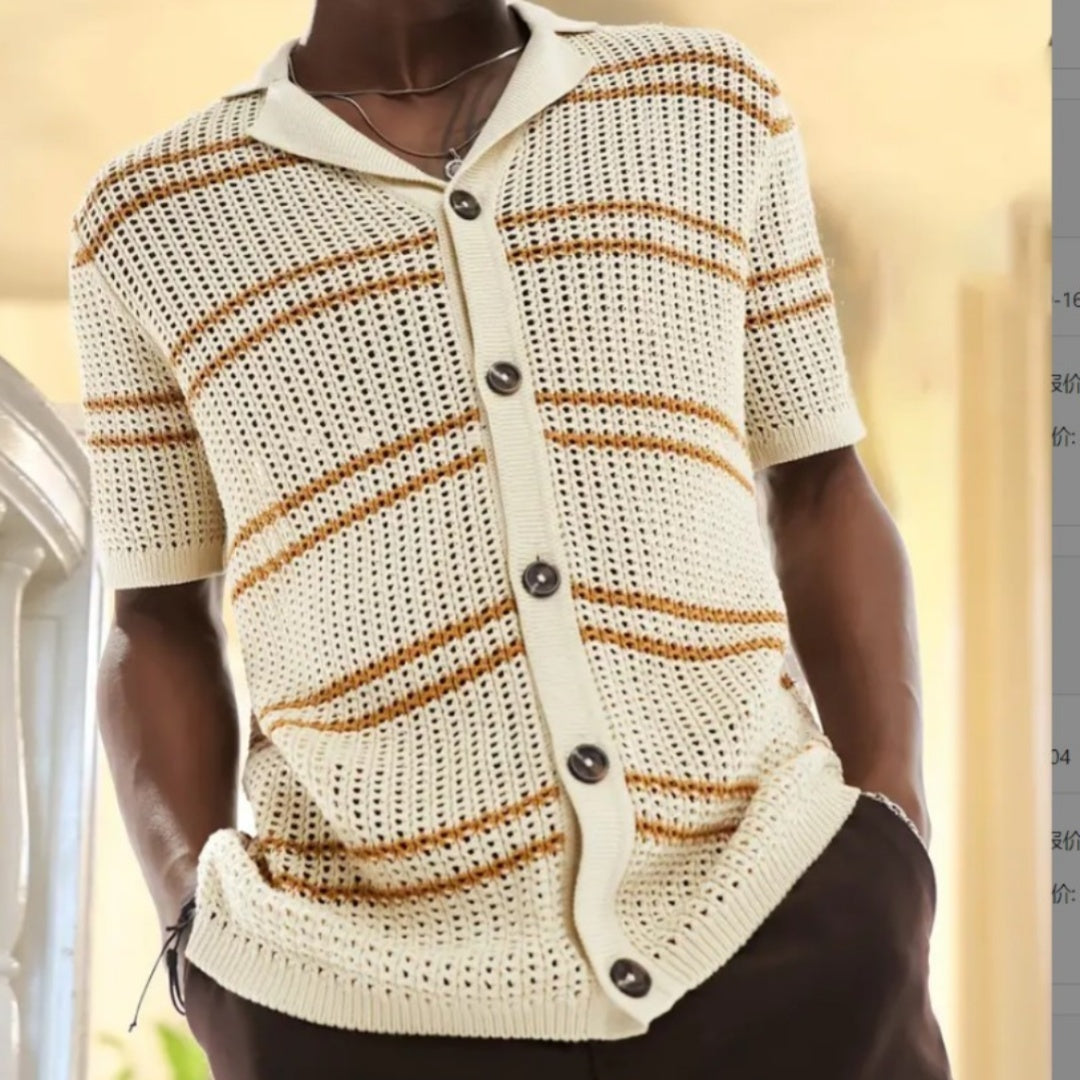 Men's Knitwear Lapel Short Sleeve Hollow Thin Cardigan