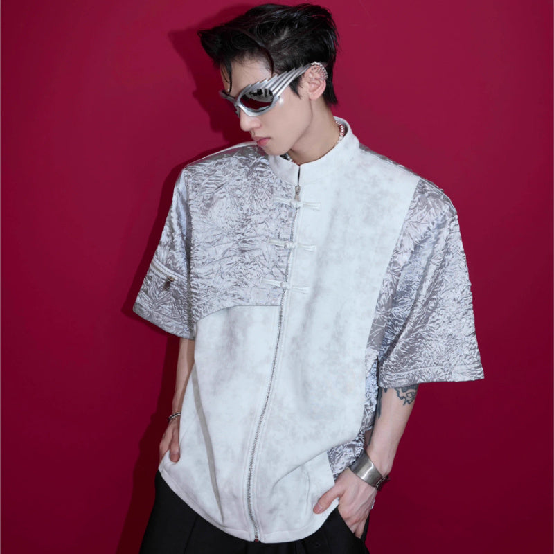 Zipper Knitted Short-sleeved Polo Shirt Men's Loose Lapels T-shirt