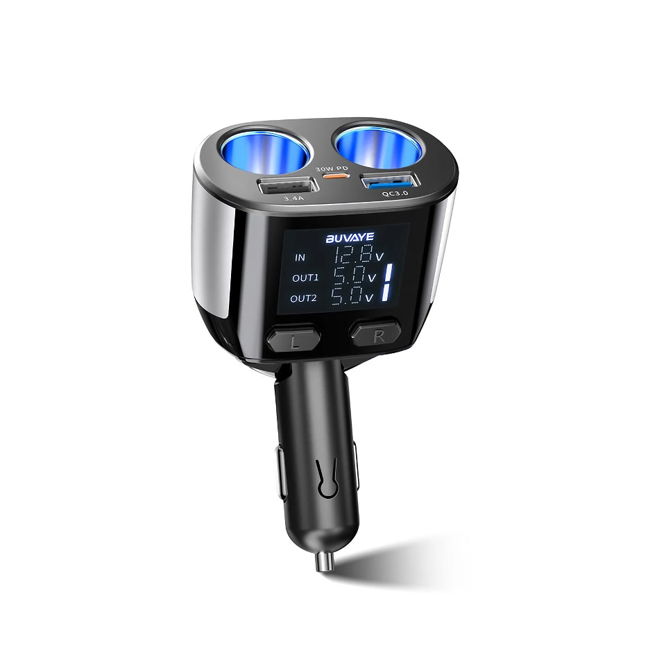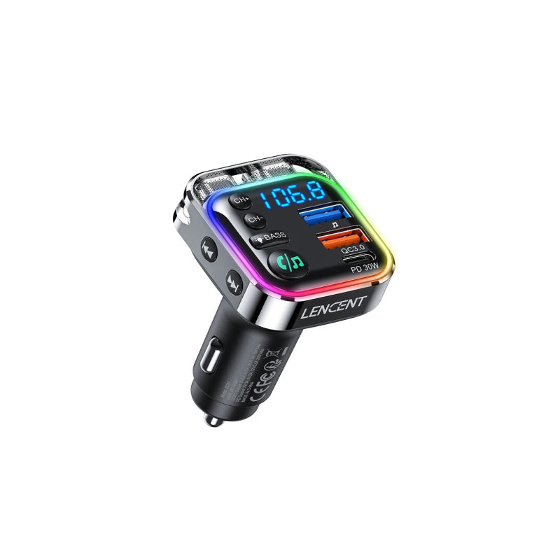 Bluetooth 5.3 FM Transmitter with 30W PD & QC3.0 Fast Charger