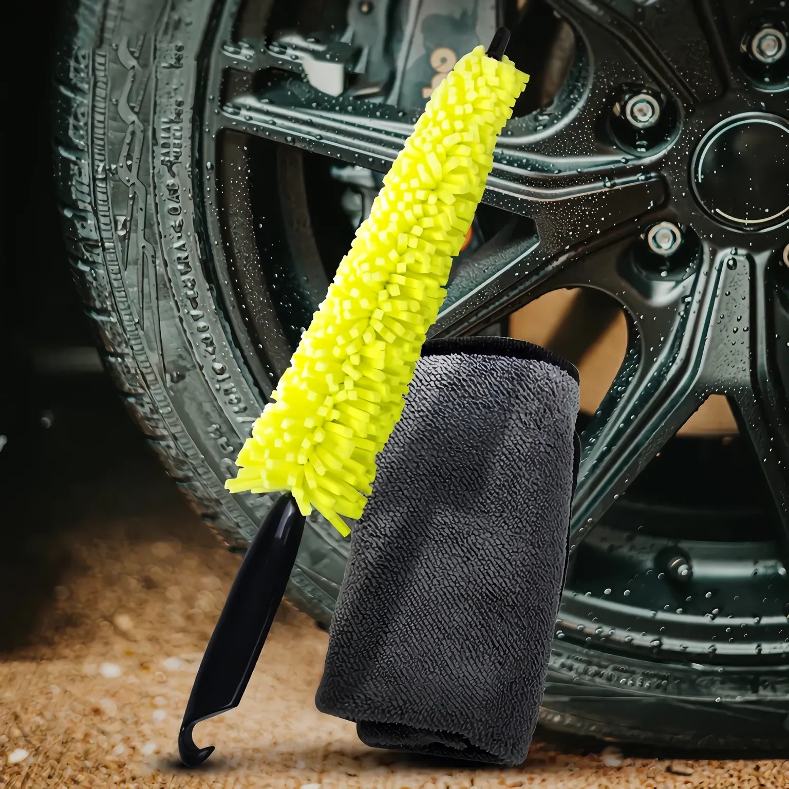 Car Detailing Brush and Microfiber Towel Set – Fast Dry Rim Cleaning Kit