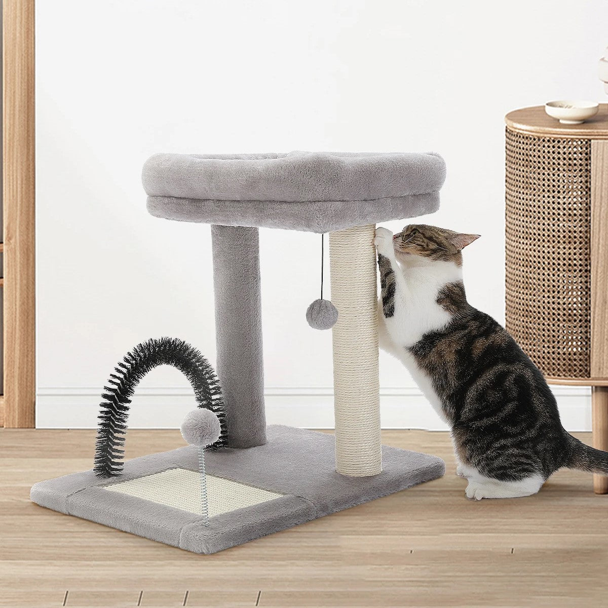 Our 50CM Small Cat Tree is more than just a piece of furniture—it's an all-in-one entertainment and relaxation center for your cat. Whether your cat is an energetic climber or a laid-back lounger, this cat tree caters to all their needs. The natural sisal scratching post helps keep claws healthy, while the self-grooming brush and spring ball offer both mental and physical stimulation. The large perch with raised edges provides a safe and comfortable spot for your cat to relax, making it the perfect addition to any cat-friendly home.Give Your Cat the Gift of Fun and Comfort