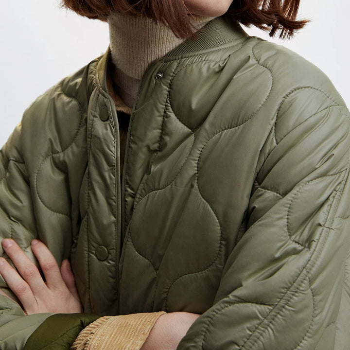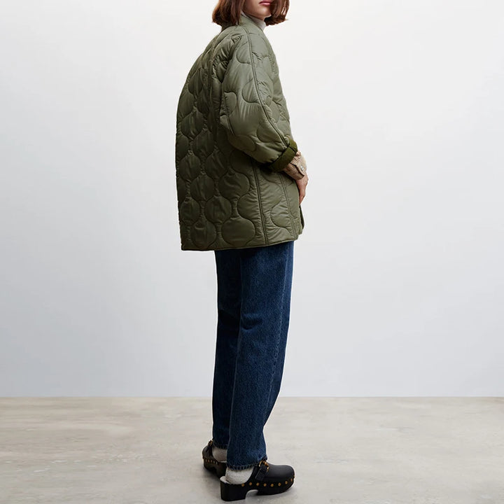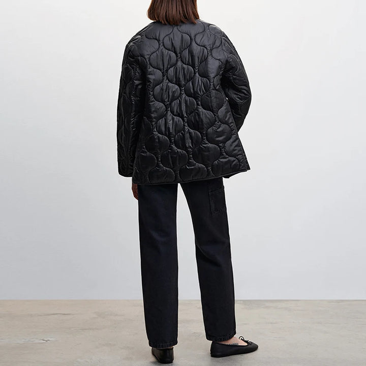This women's quilted jacket is more than just a coat—it's a smart investment in your winter wardrobe. The lightweight design ensures that you’ll stay warm without feeling restricted, making it easy to move freely as you go about your day. Thanks to its solid, neutral color and minimalist design, this jacket pairs well with almost anything in your closet, whether you're layering it over casual jeans or a stylish dress. It's the perfect combination of function and fashion for the modern woman who wants to stay cozy while looking chic.Benefits