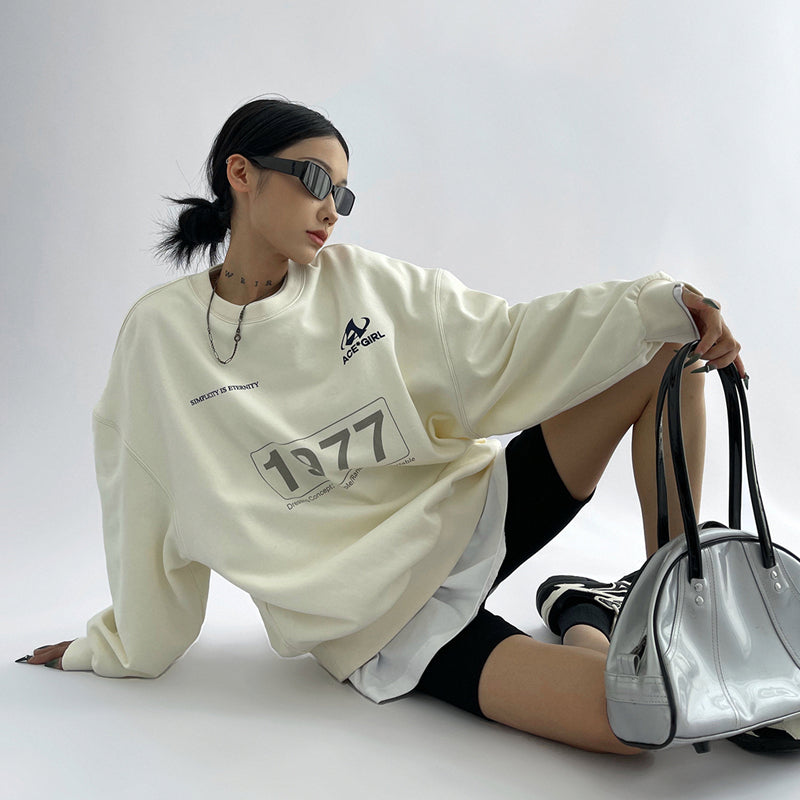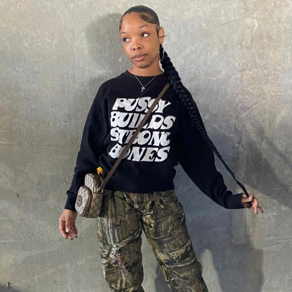European And American Women's Clothing Digital Letter Print Top Round Neck Long Sleeve Casual Sweatshirt Women