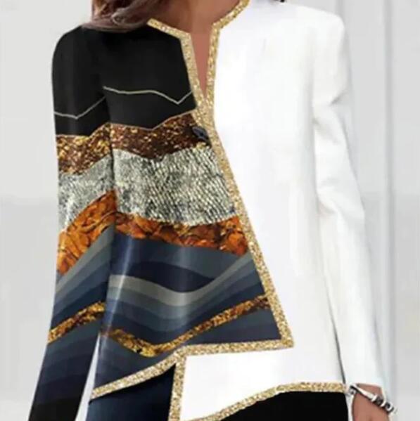 Digital Printed Flower V-neck Hem Asymmetric Women's Long Sleeves