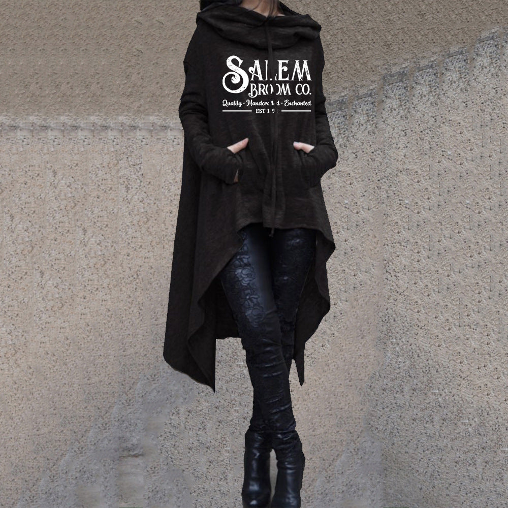 Autumn And Winter Mid-length Long Sleeve Large Size Irregular Hooded Sweater Casual Top