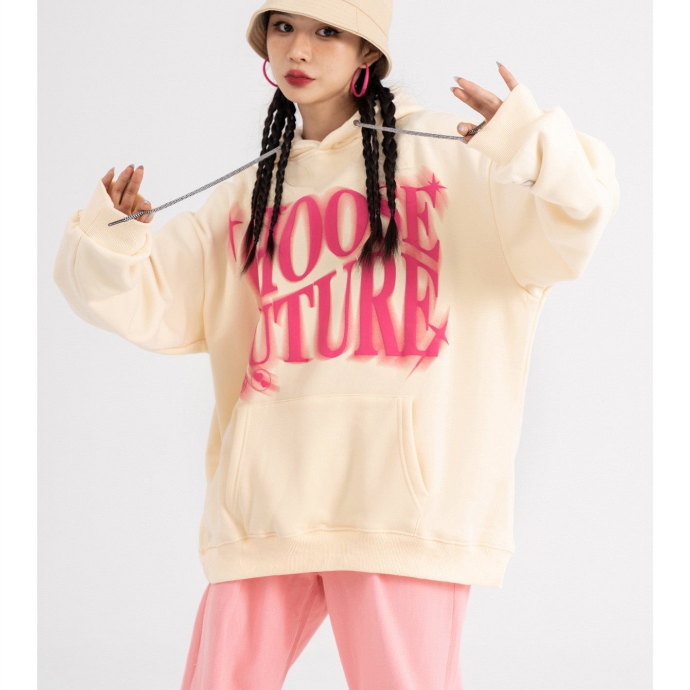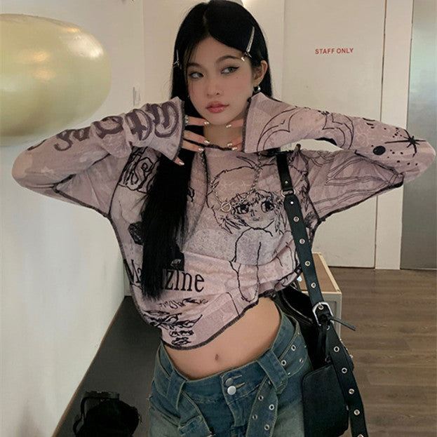 Korean Loose Hoodie Printed Long Sleeve Slouchy Style