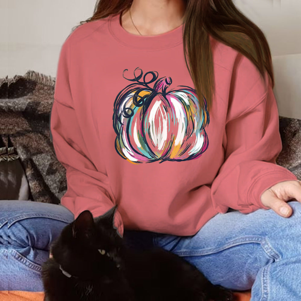 Pumpkin Printed Thin Sweater For Female Christmas