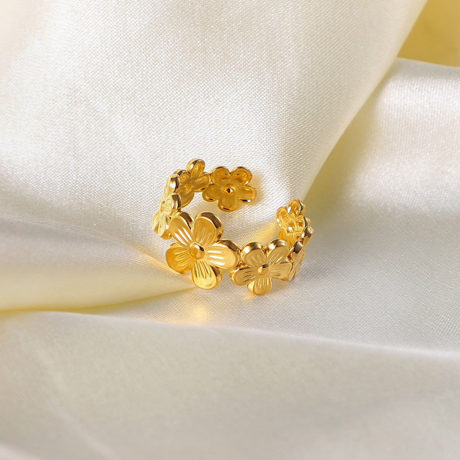 Chic 18K Gold-Plated Stainless Steel Adjustable Flower Ring