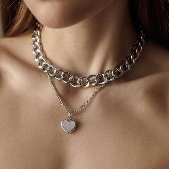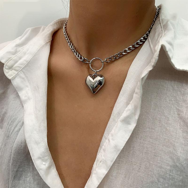 Heart Pendant Punk Choker - Fashion Metal Link Chain Necklace for Women