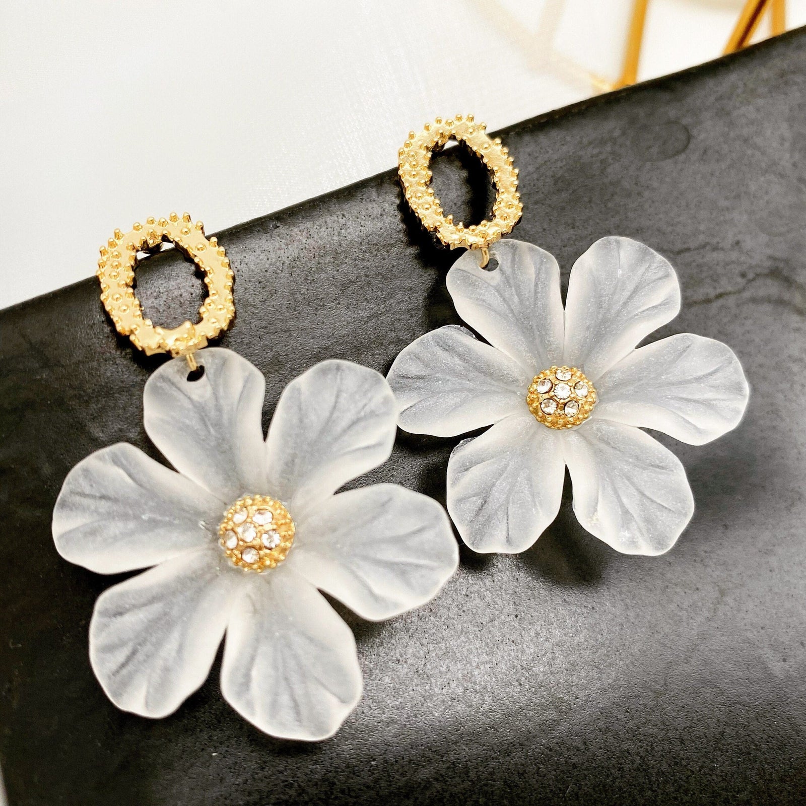 Chic White Floral Stud Earrings