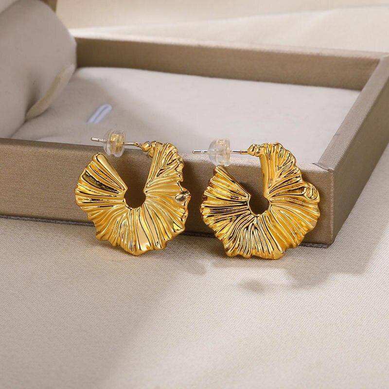 Ginkgo Leaf Gold Stud Earrings - Exquisite Stainless Steel Fashion Jewelry for Women