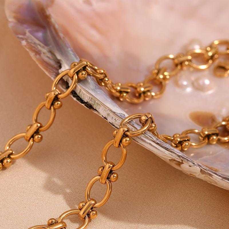 18K Gold Plated Oval Flower Chain Necklace - Hypoallergenic & Waterproof