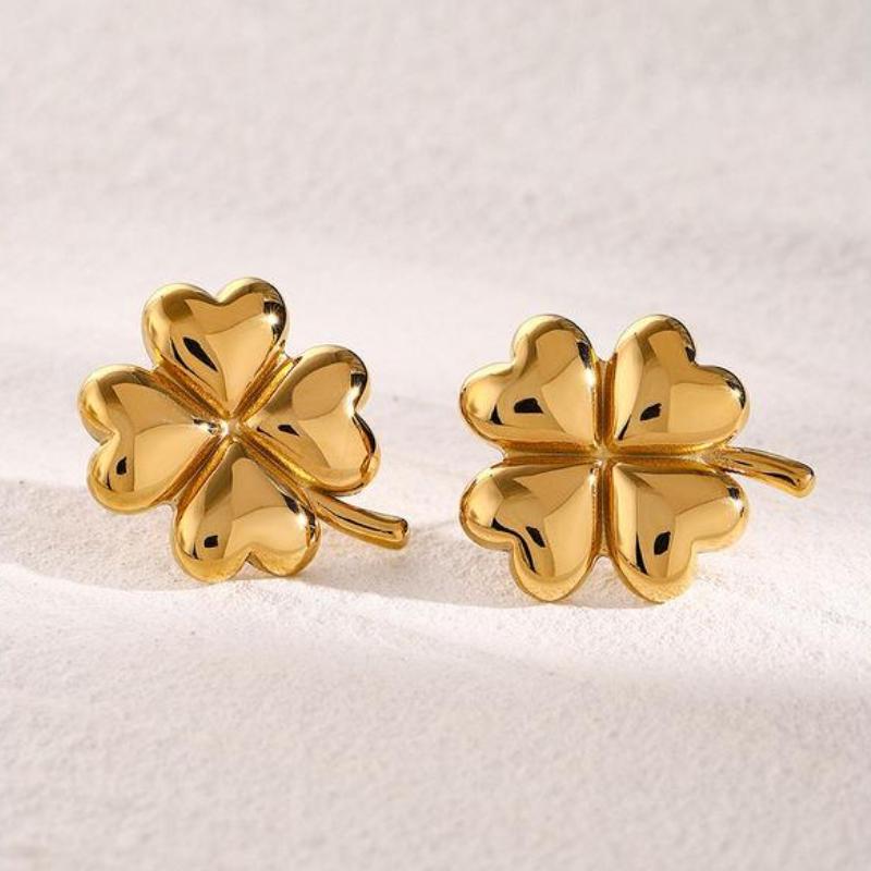 18K Gold Plated Stainless Steel Four-Leaf Clover Drop Earrings