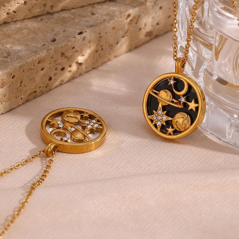 Black and White Moon & Star Universe Pendant Necklace - Stainless Steel Jewelry Gift
