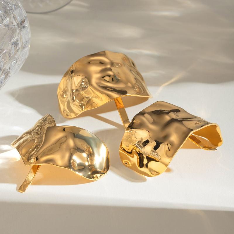 Gold Plated Geometric Irregular Design Tarnish-Free Stainless Steel Ring