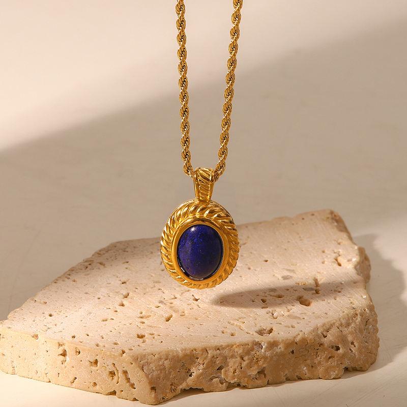 18K Gold Plated Rope Chain Necklace with Oval Lapis Pendant