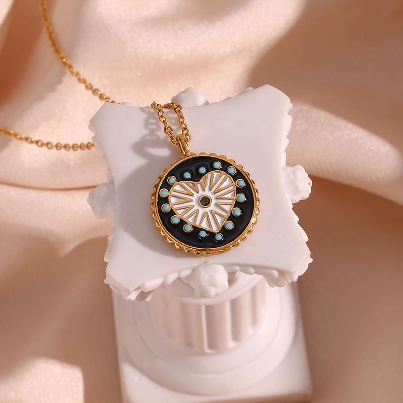 Double-Sided Black & White Enamel Heart Sunburst Necklace