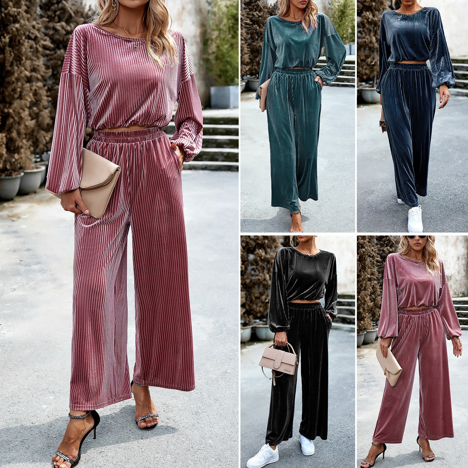 Women's Fashion Simple Solid Color Casual Velvet Suit