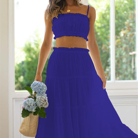 Women's Lace Sling Stitching Large Swing Skirt Fashion Suit