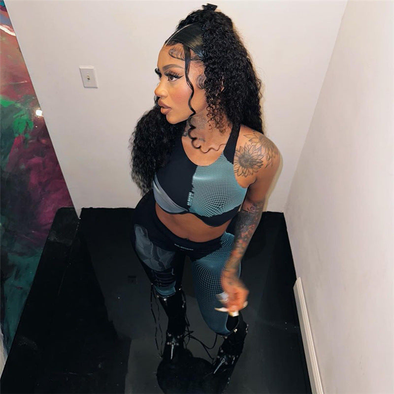 Fashion Sexy Ladies Two-piece Set Digital Printed Tape Mask