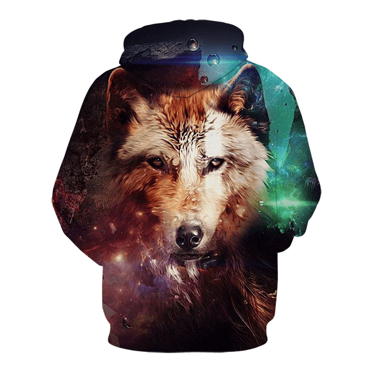 3D Colorful Wolf Print Hooded Pocket Sweatshirt