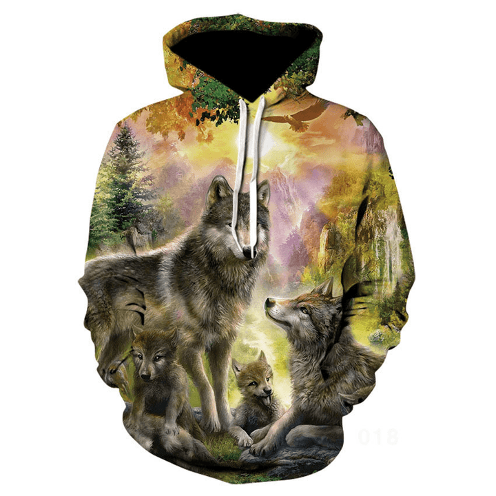 Color Wolf Digital 3D Printed Hooded Sweatshirt