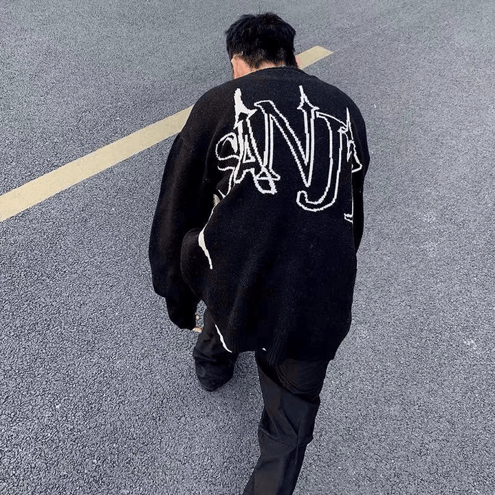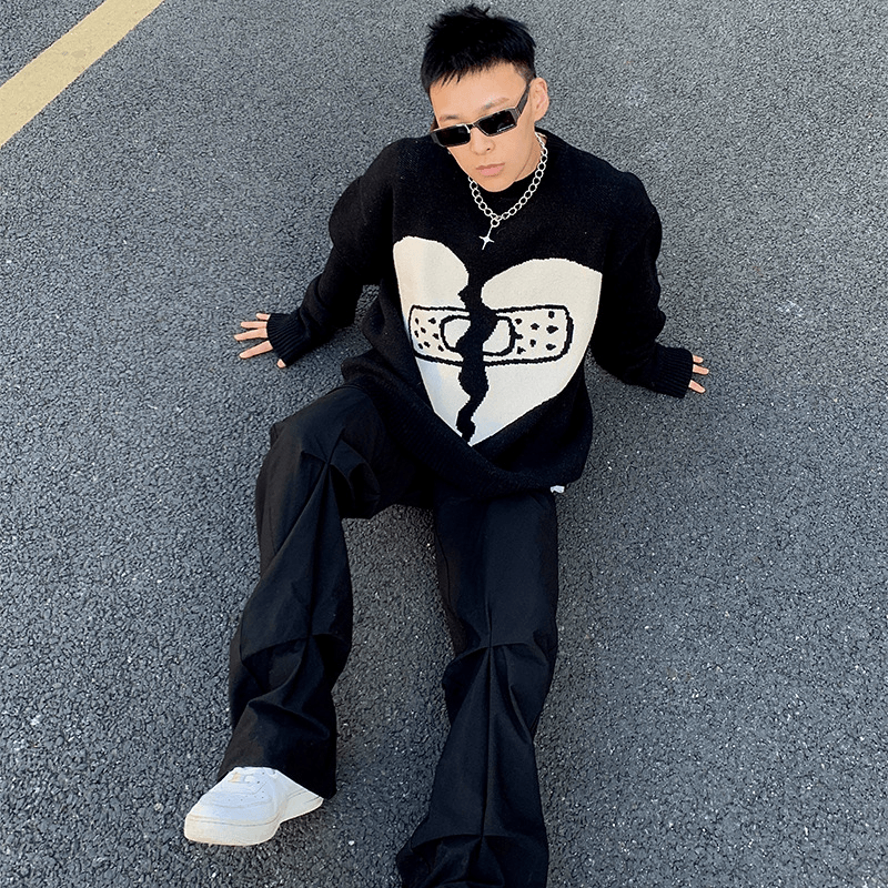 Japanese Lazy Sweater Men'S Band-Aid Small Neckline Jacket