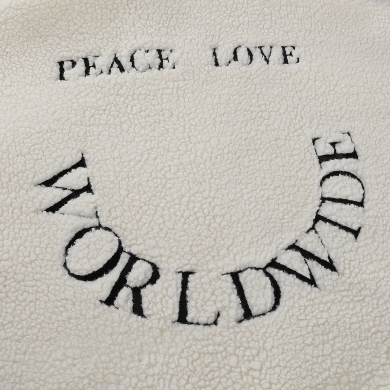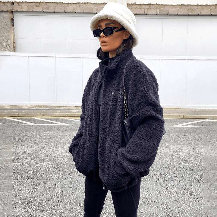 Trendy Letters Embroidered Lamb Velvet Long-Sleeved Jacket