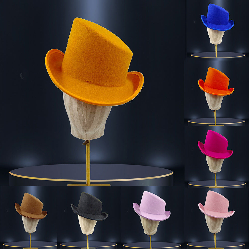 New Bevel Magic Hat Soft Woolen Men's Flat Top Roll Brim Hat Autumn And Winter