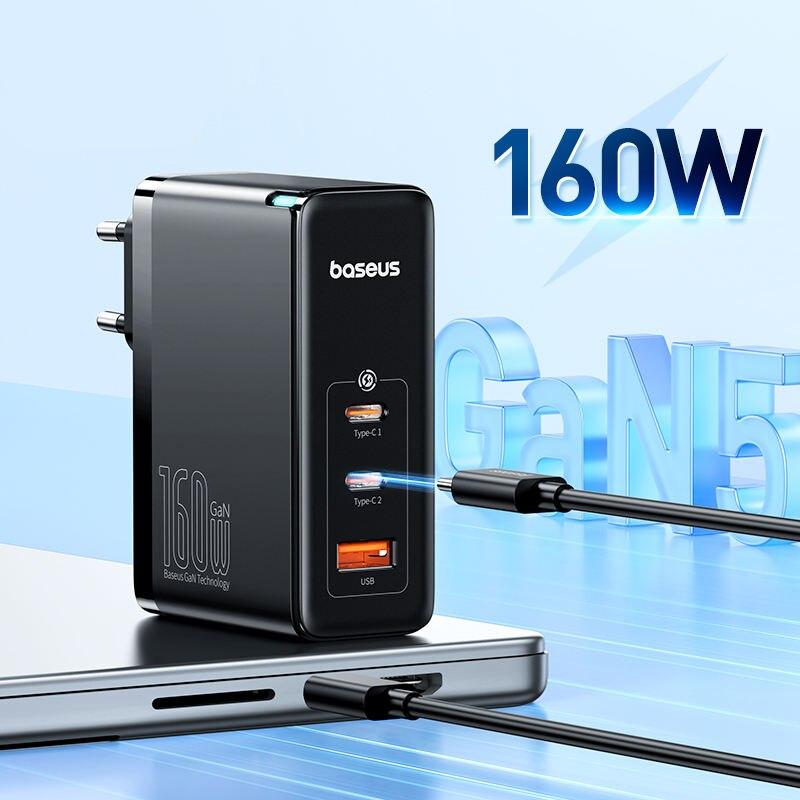 160W GaN Fast Charger: Triple-Port, High-Power USB-C & USB Travel Charger