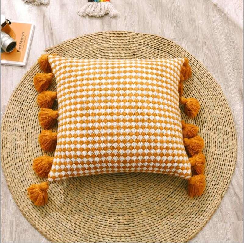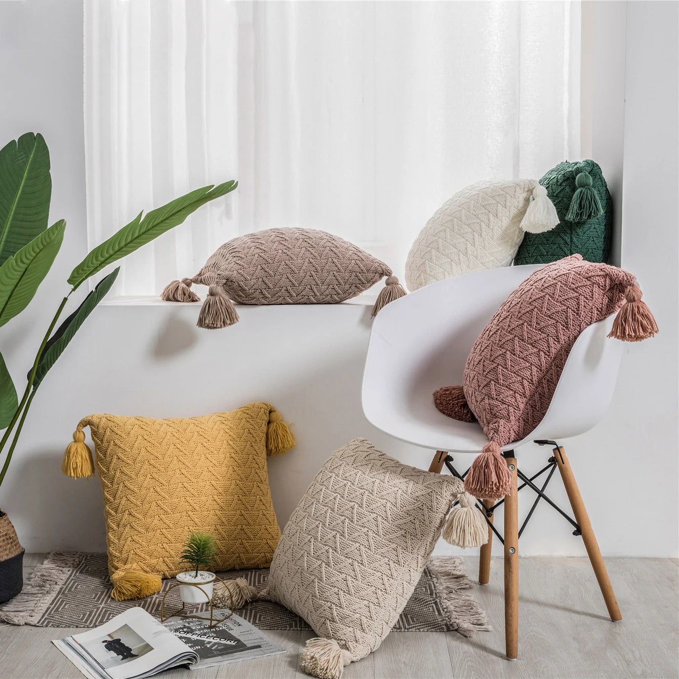 Soft Chenille Knitted Pillow Cover - Nordic Tassel Cushion Case