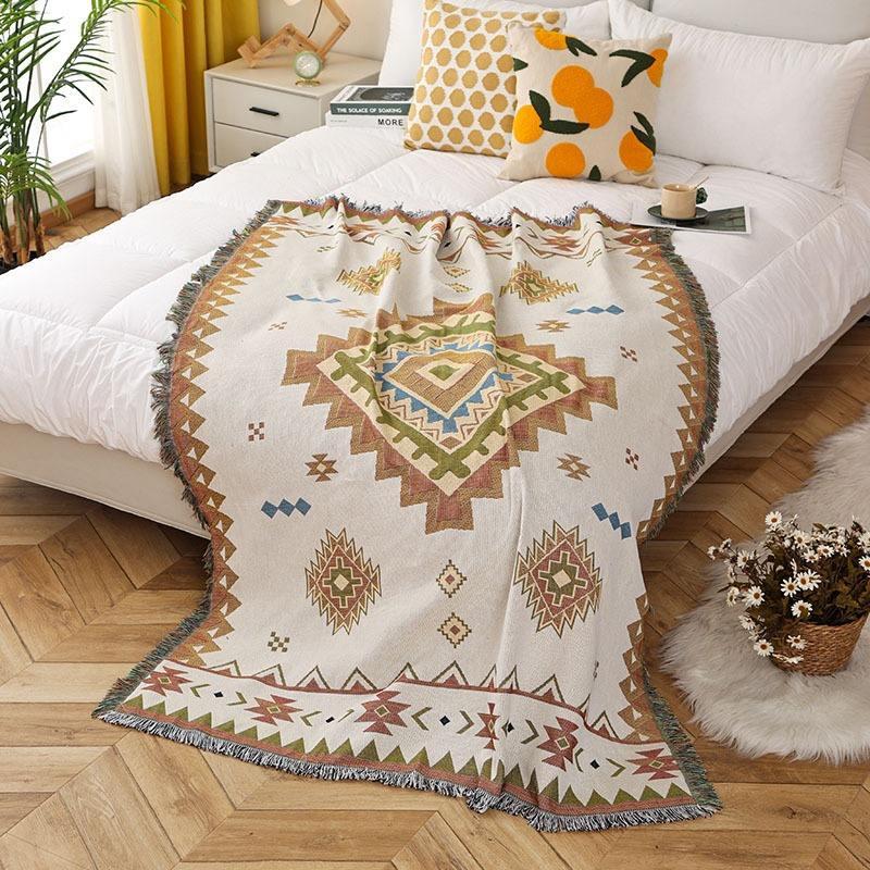 Bohemian Geometric Pattern Blanket with Luxurious Fringes