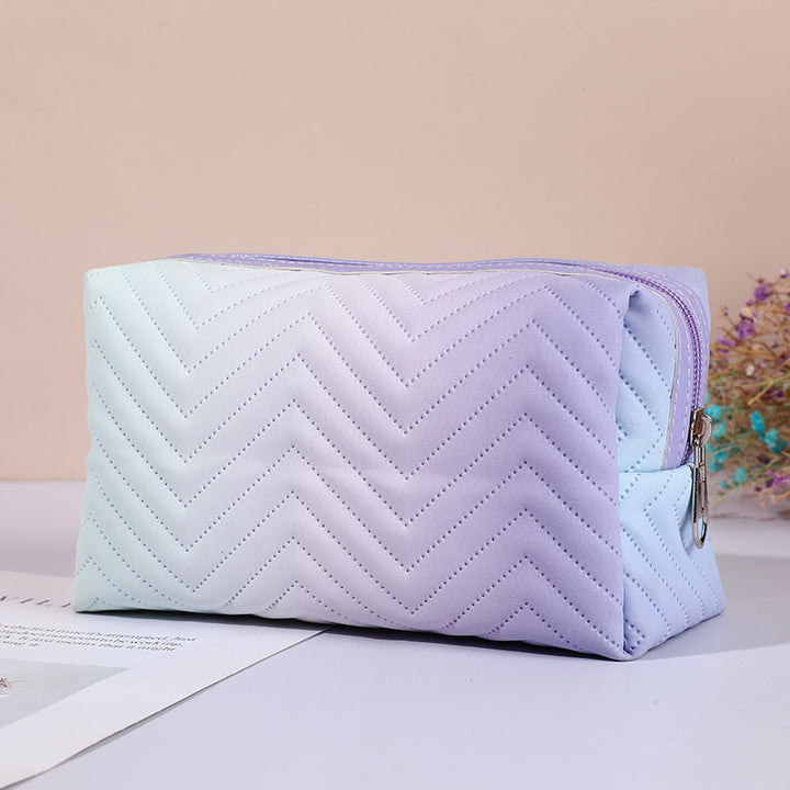 This makeup bag is not just a storage solution but a fashion statement. The blend of functionality and style sets it apart from ordinary cosmetic pouches. Its unique gradient design adds a touch of elegance, while the durable PU leather ensures it withstands daily use. Plus, the secure zipper closure gives you peace of mind that your items are safe and organized. Don't miss out on this essential accessory! Upgrade your travel essentials with our Gradient Color Makeup Bag for Women and experience the perfect blend of style and practicality. Order yours today and keep your beauty essentials organized in style!