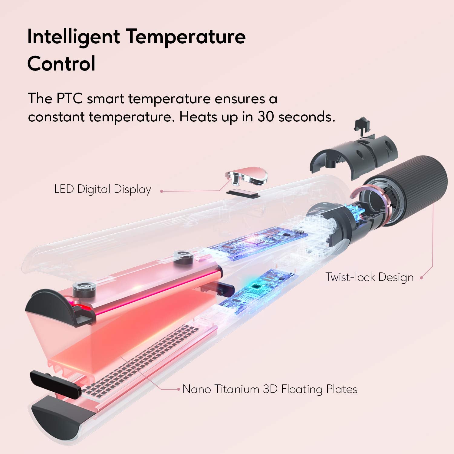 • Instant Heating: Heats up rapidly to provide consistent heat for quick styling.