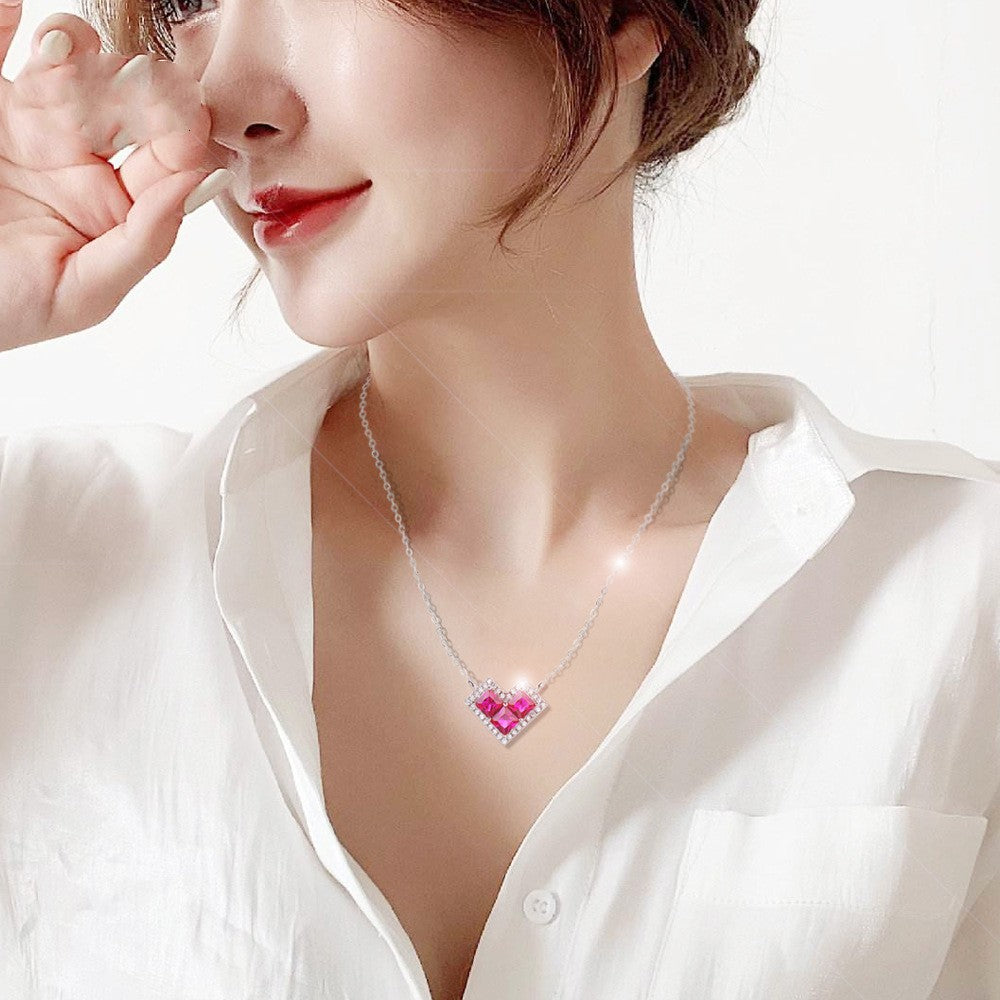 S925 Silver Necklace Women's Simple Red Heart