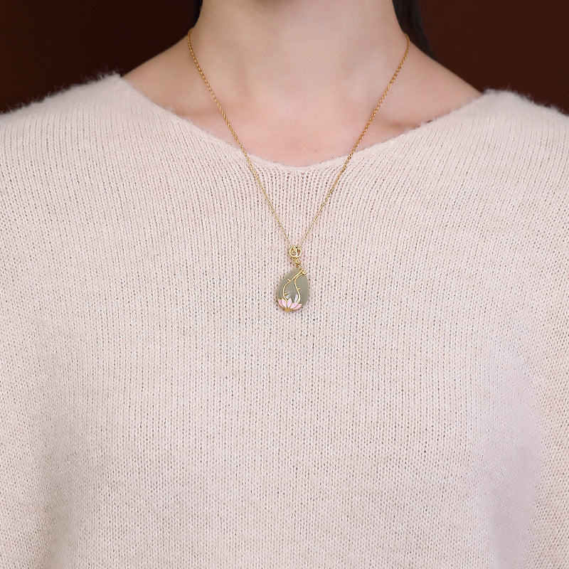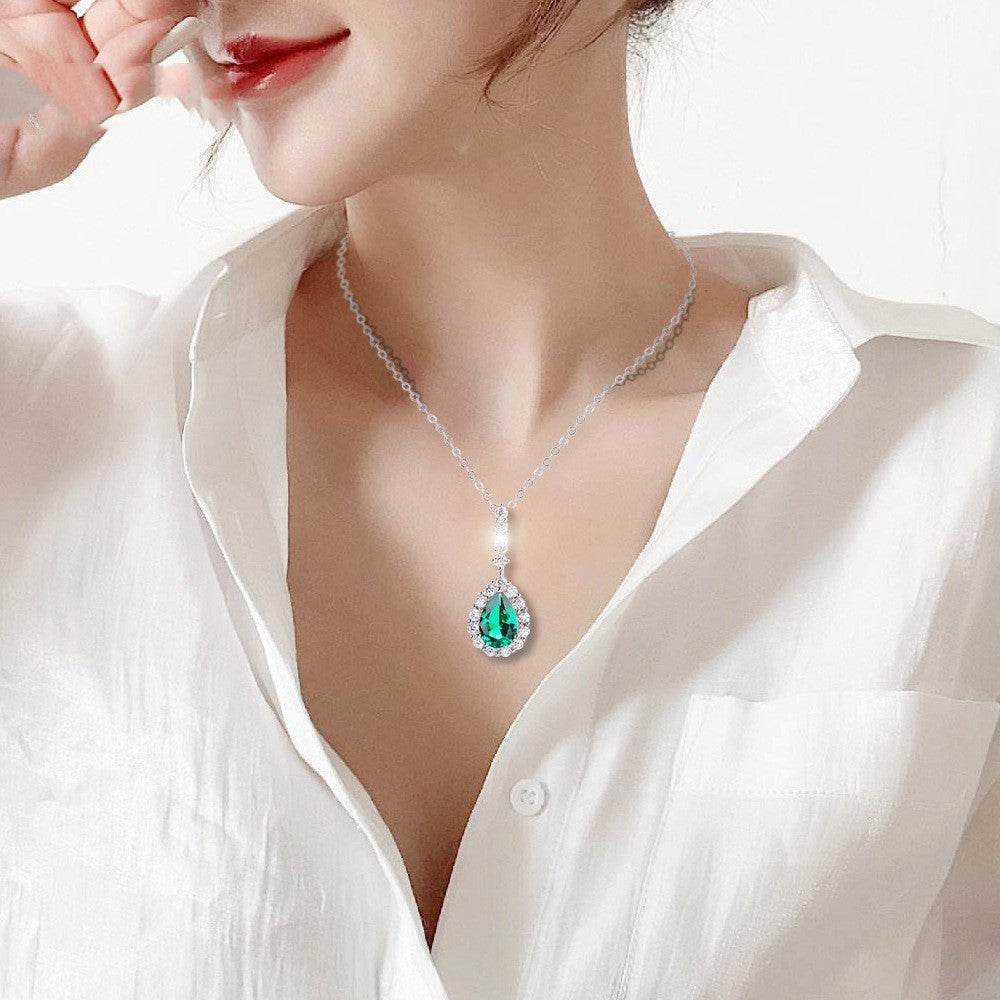925 Silver Inlaid Water Drop Color Treasure Necklace