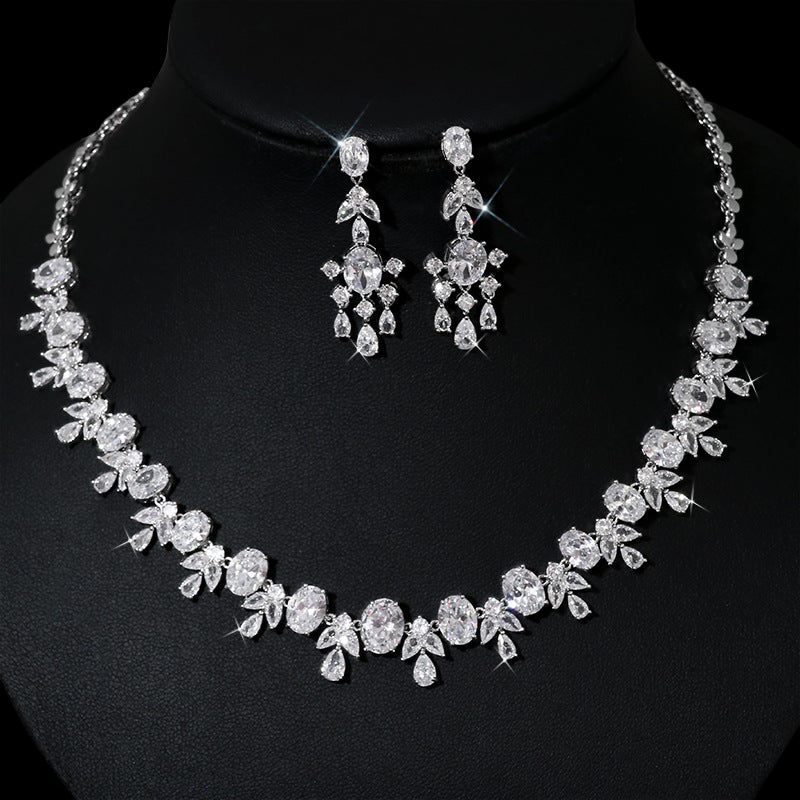 Women's Fashion Casual Skinny Zirconia Tassel Necklace Earrings Set