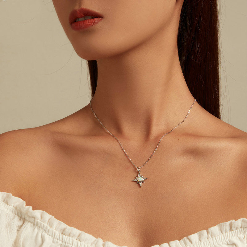 S925 Silver Star Opal Necklace Female