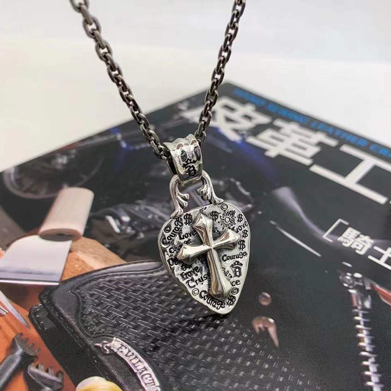 Women's Fashion Embossed Love Necklace With Leather Cord