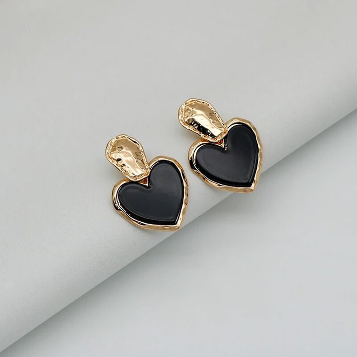 Black Heart Drop Earrings - Vintage Zinc Alloy Fashion Jewelry