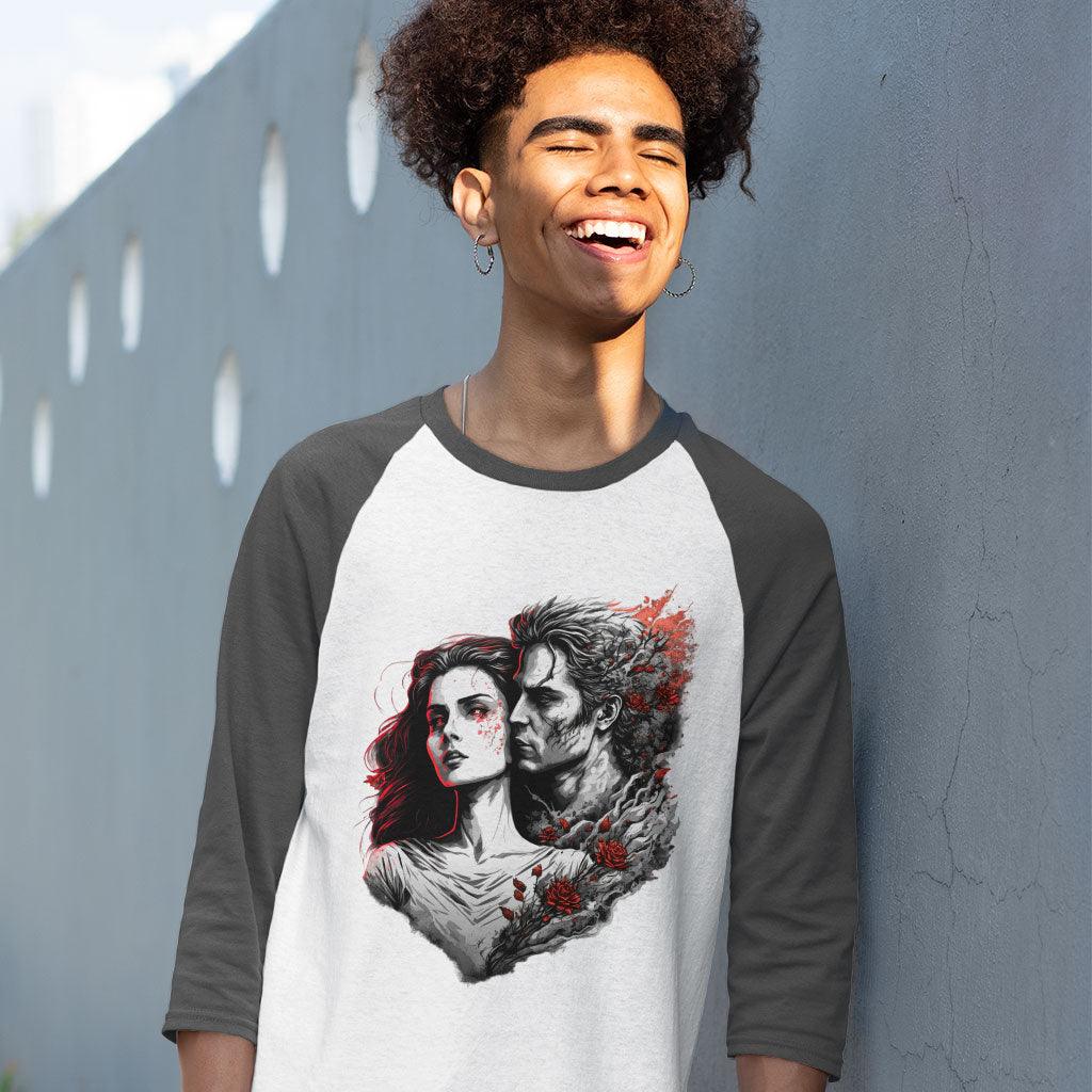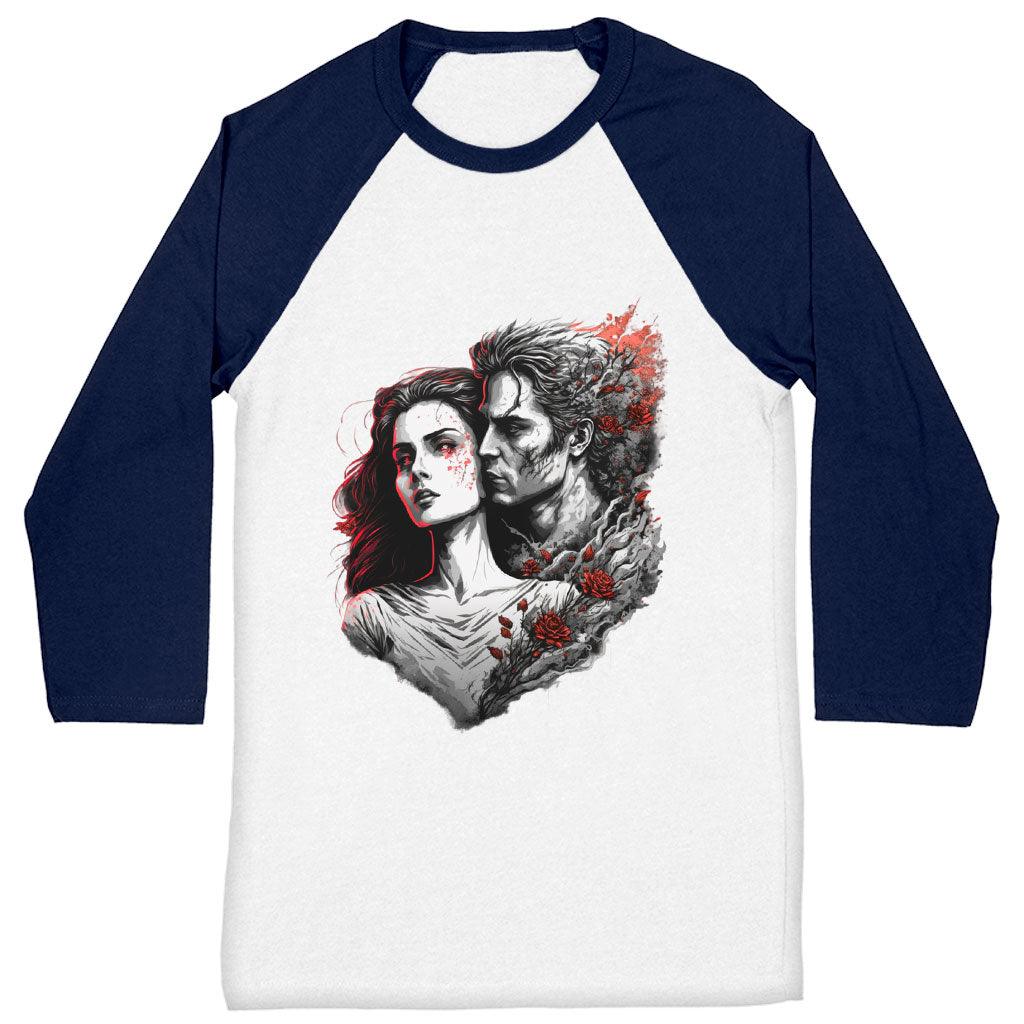 Rose Print Baseball T-Shirt - Graphic T-Shirt - Love Print Baseball Tee