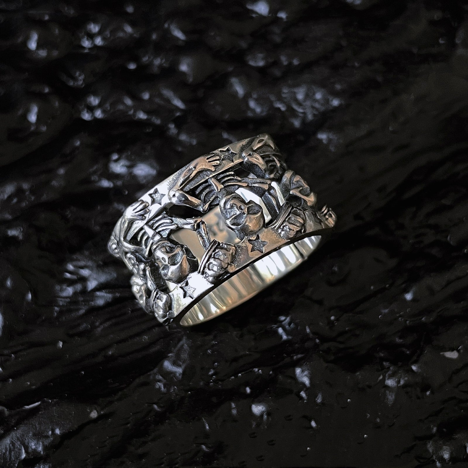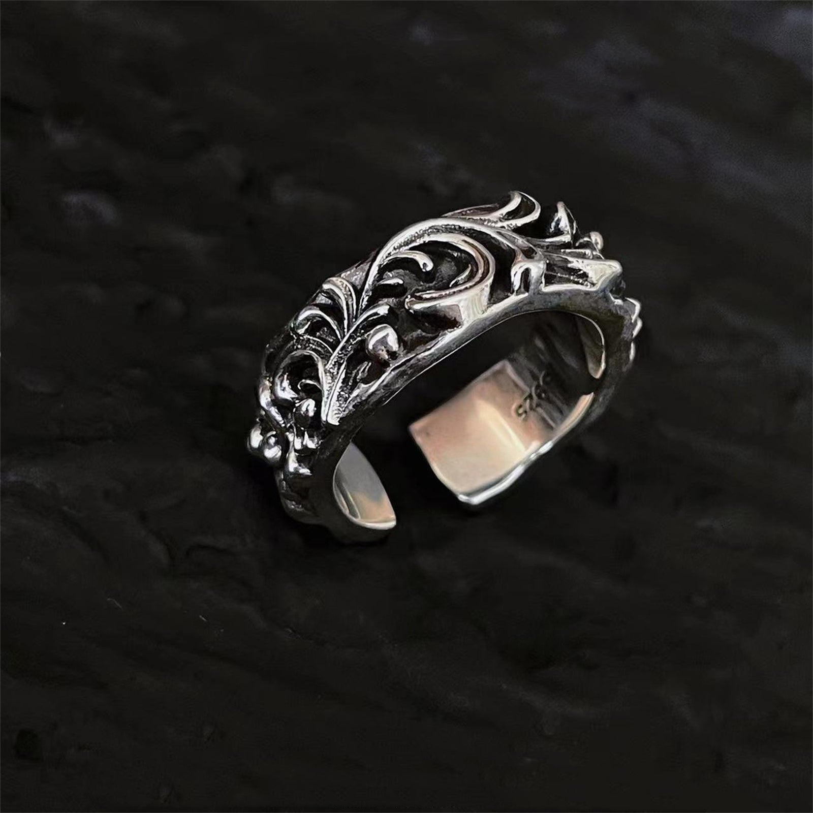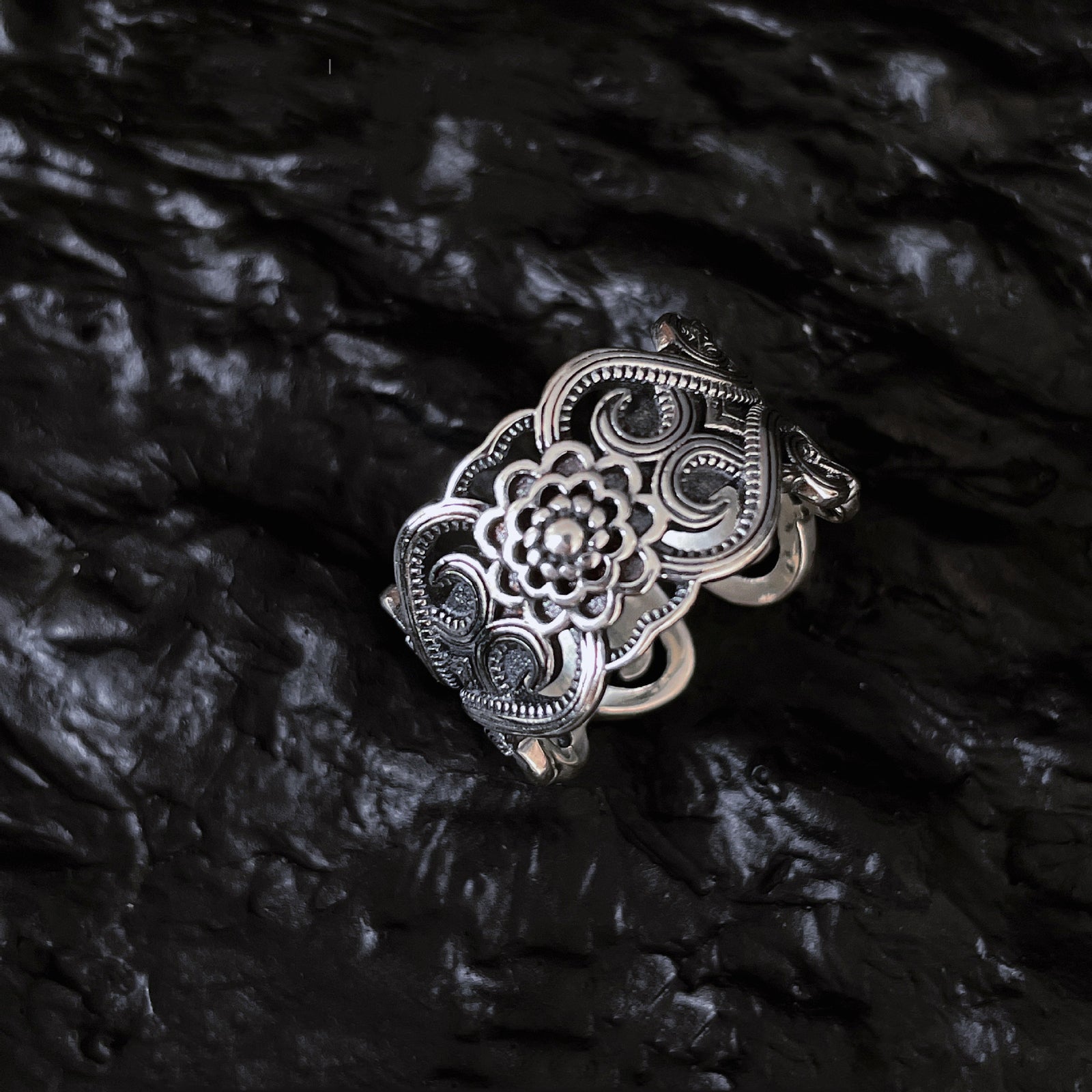 Silver Antique Heavy Industry Embossed Brambles Arakra Pattern Ring