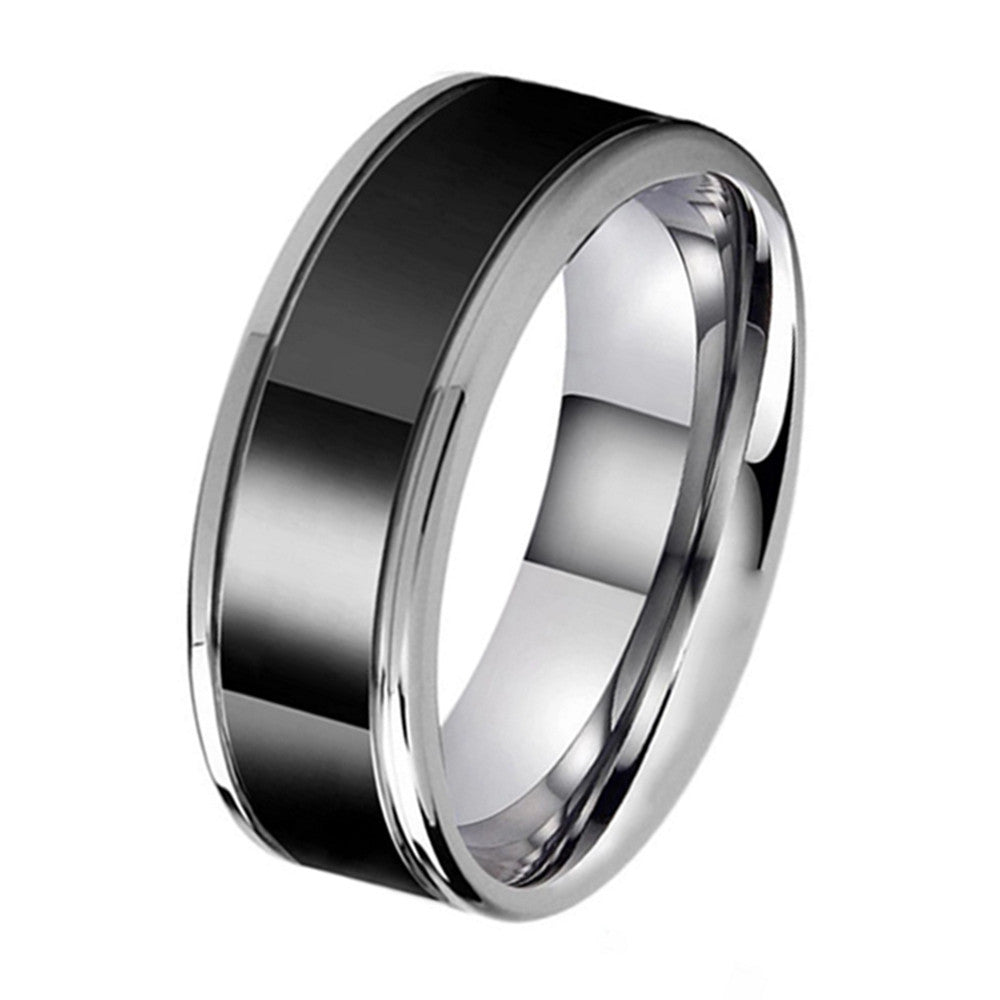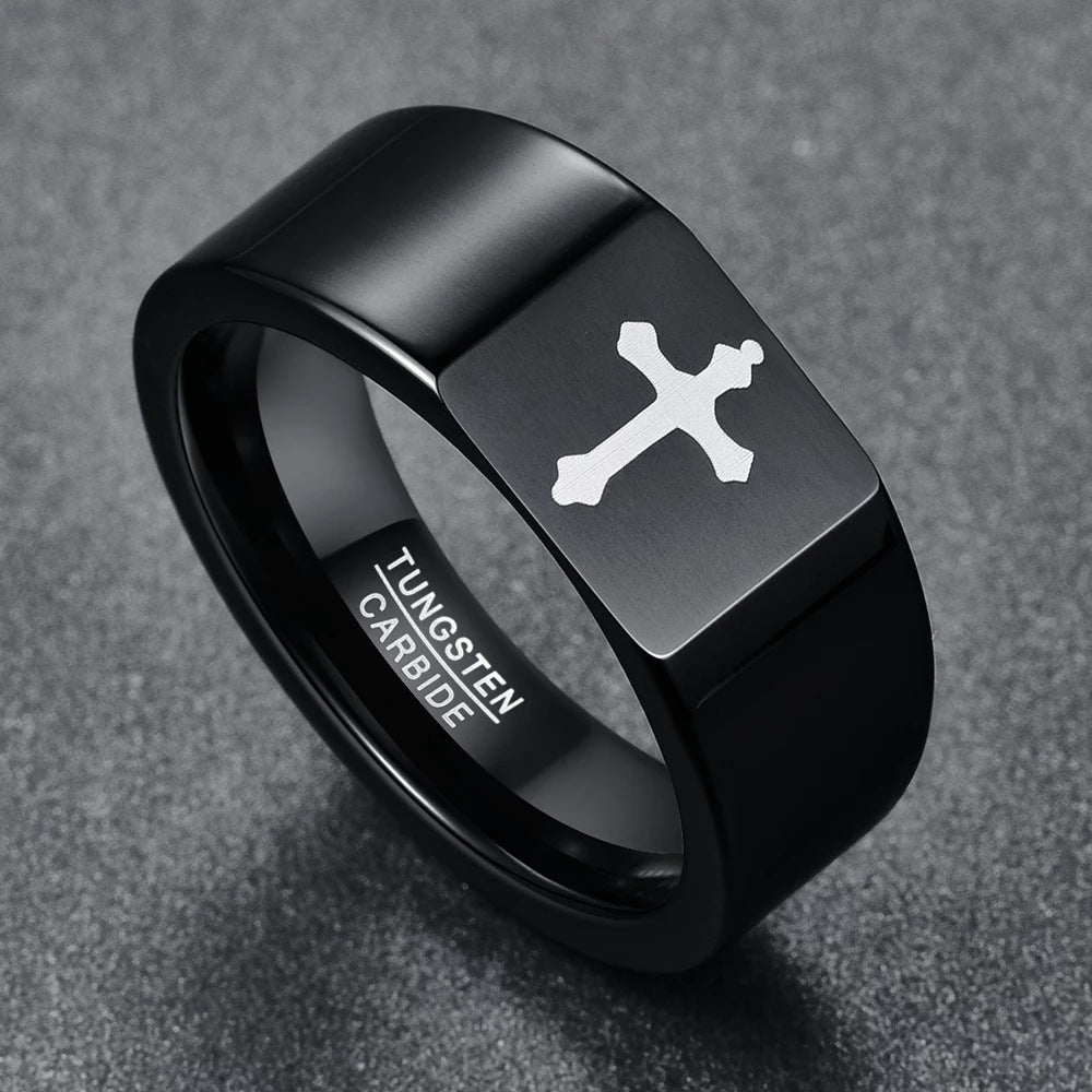 Tungsten Steel Ring Personalized Cut Flower Black Laser