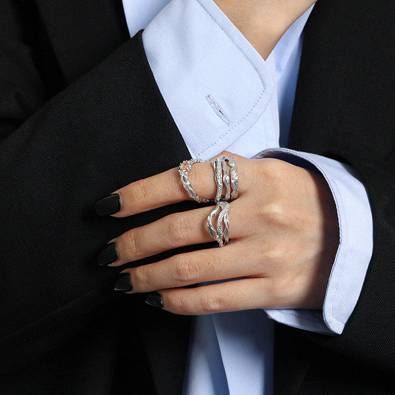Women's Irregular Face Snake Pattern Texture Sterling Silver Ring
