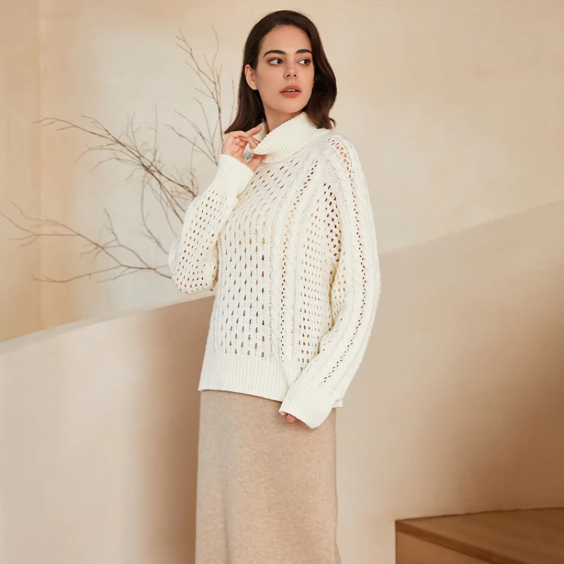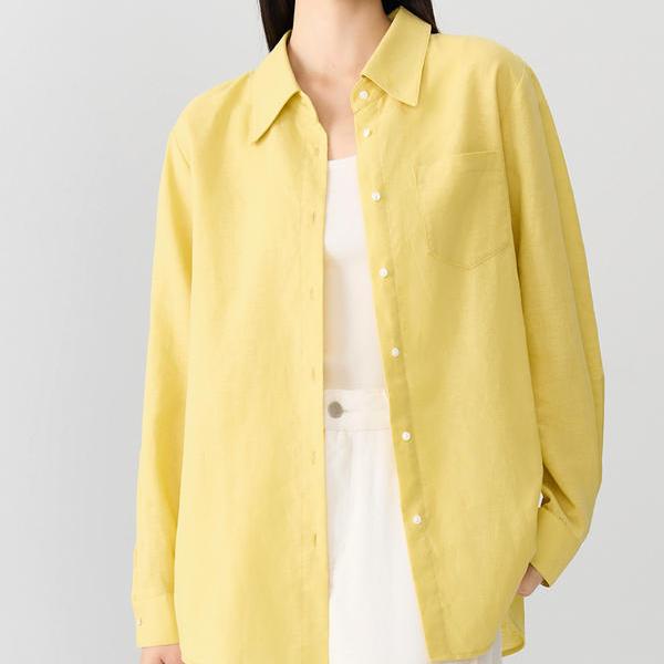 Autumn Long Sleeve Cotton Linen Polo Neck Blous