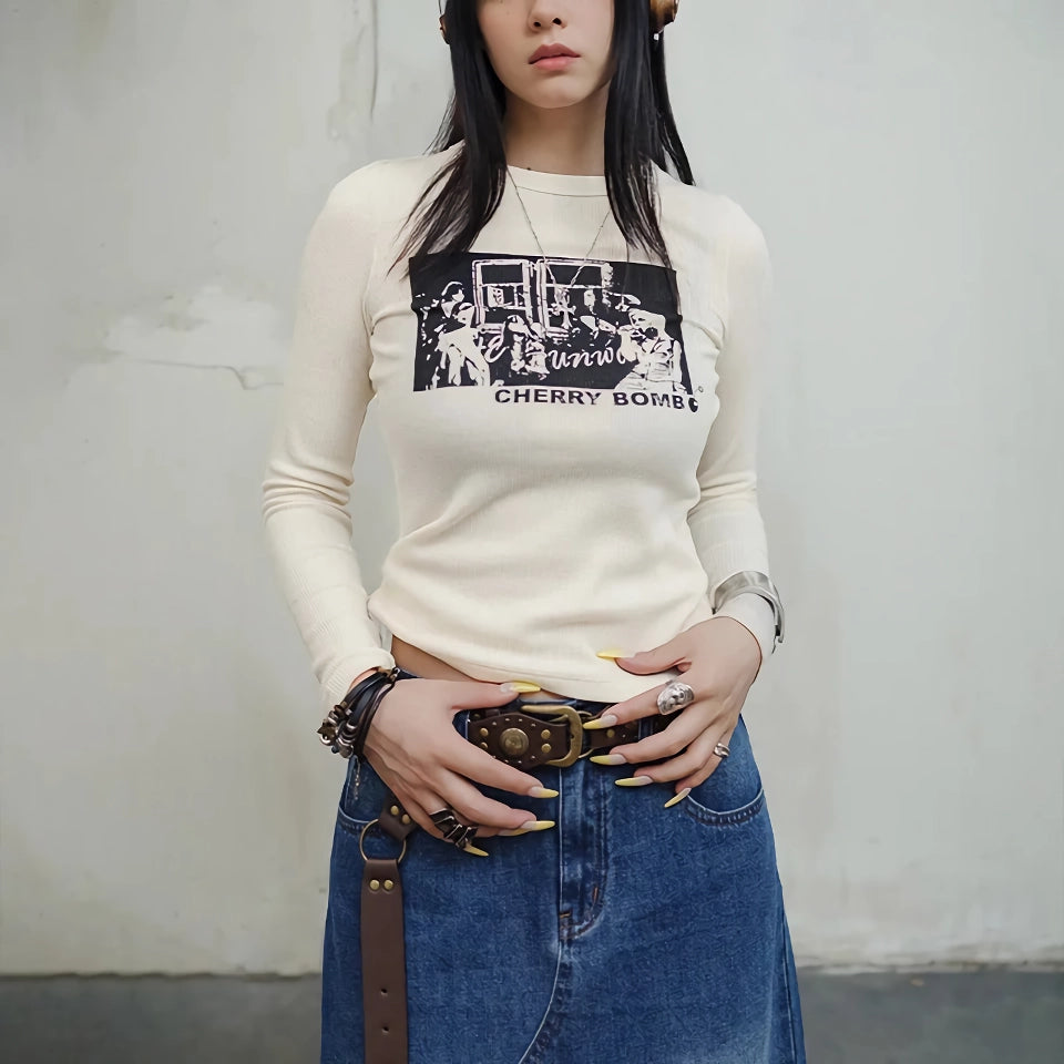 Cherry Bomb Long-Sleeved Slim Fit Tee for Women