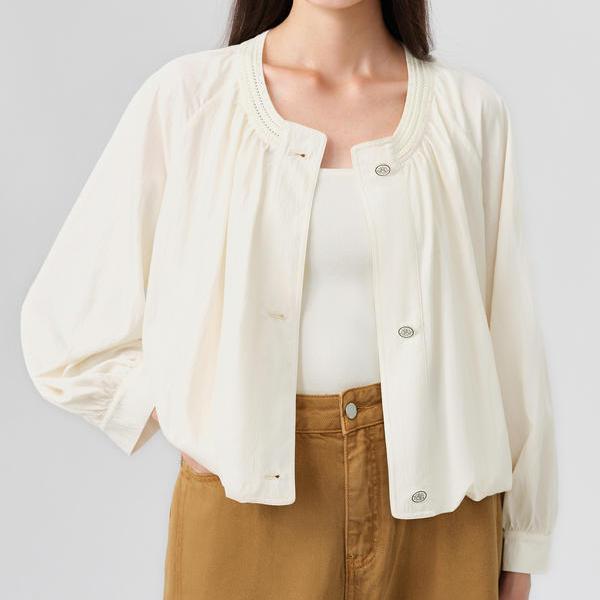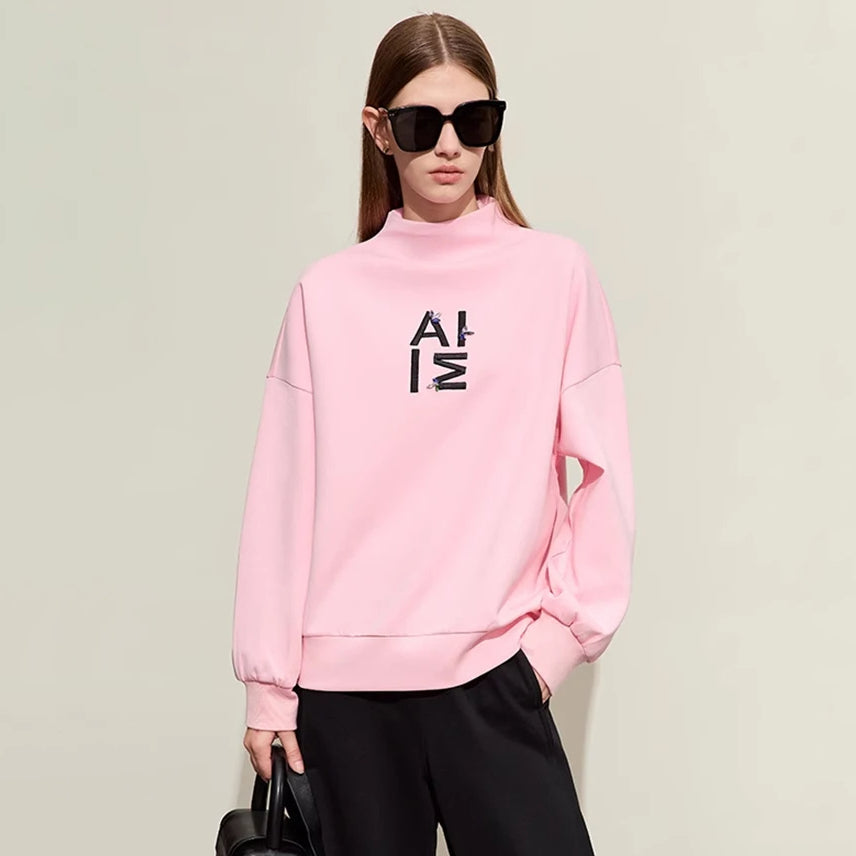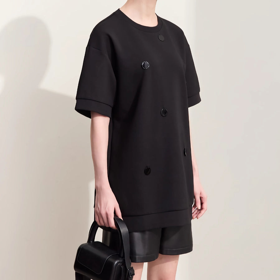 Minimalist Autumn Shell Decoration Loose Casual T-Shirt for Women