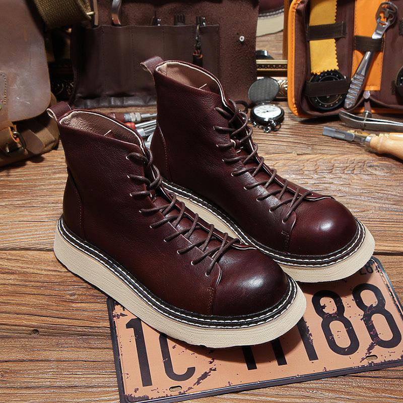 Vintage Cow Leather Military Motorcycle Boots for Men