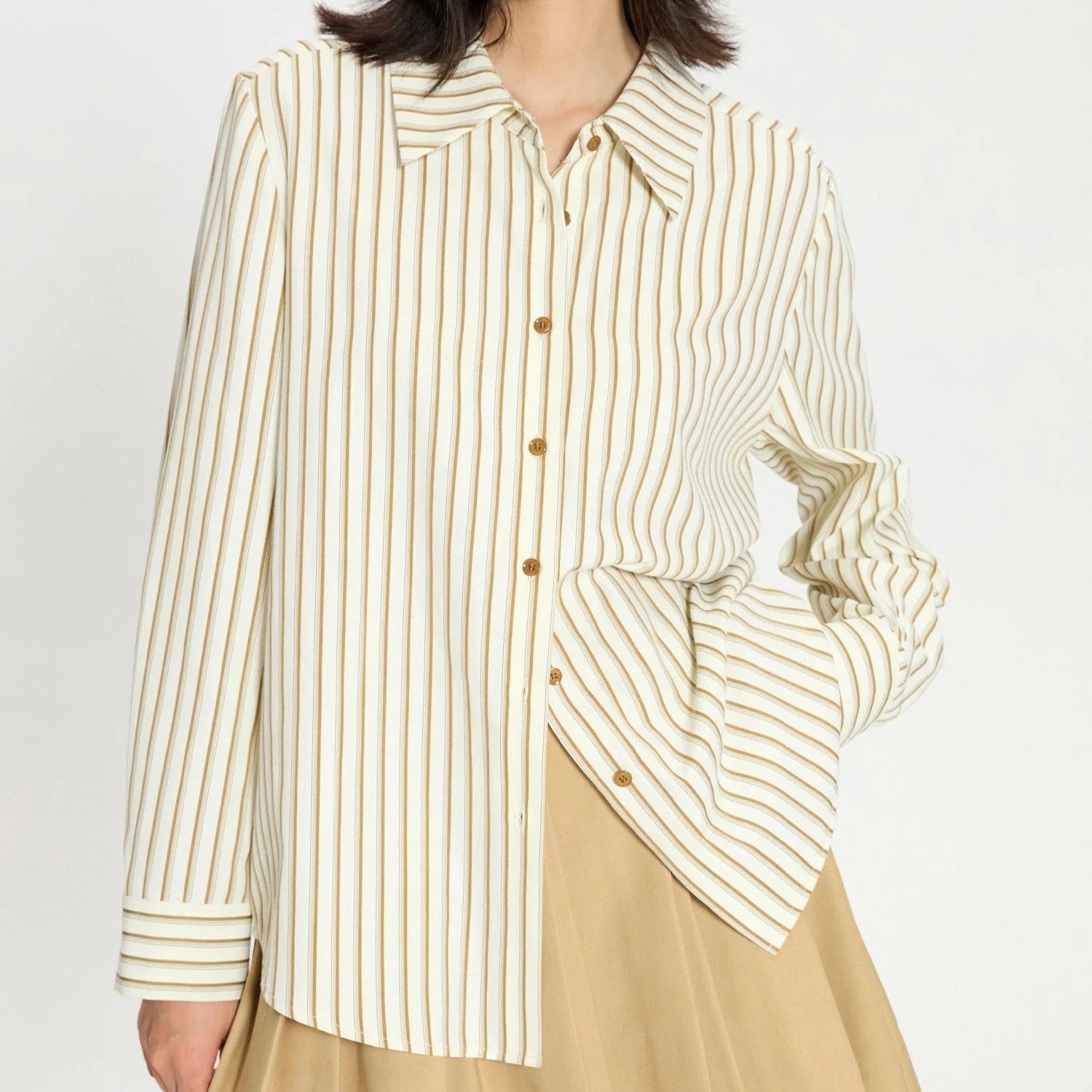Irregular Striped Flared Sleeve Polo Neck Shirt